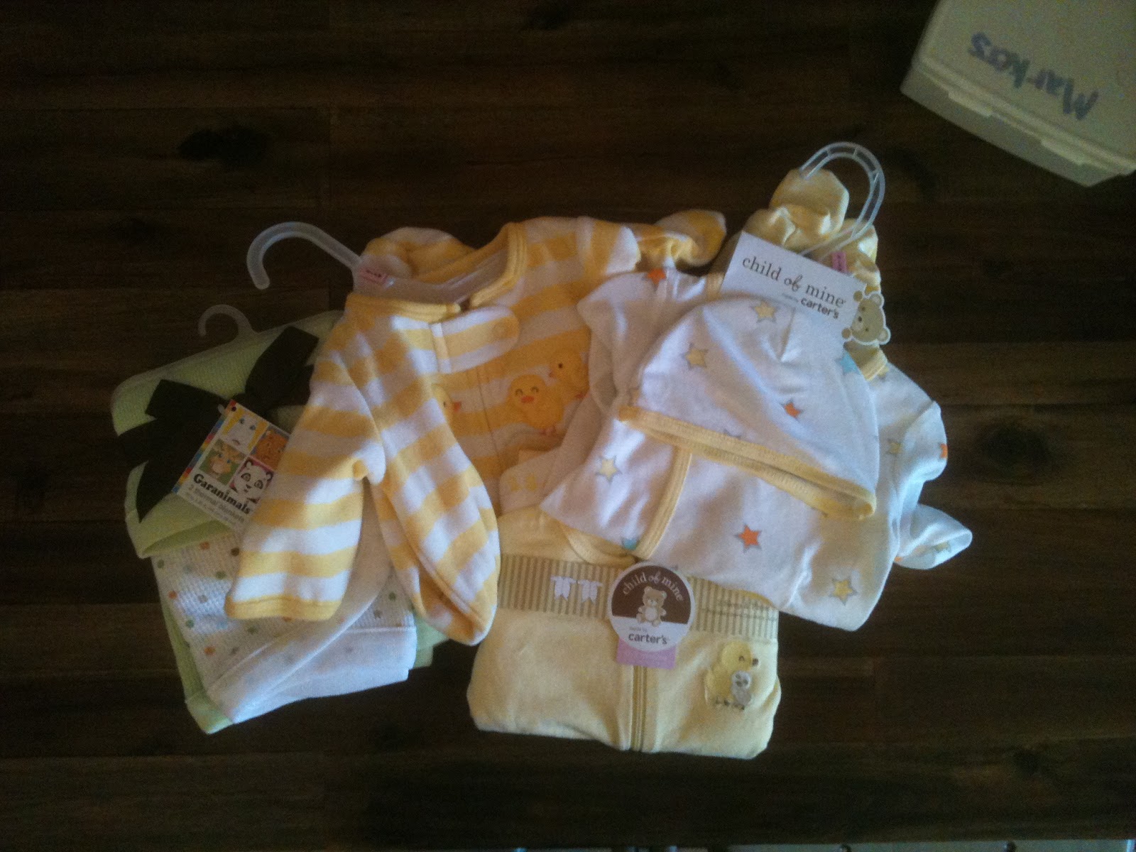 Do you know what you’re having? No. We have never found out with any of our babies and we like the suspense. I’m calling this one Spring Chick, but chicks are boys or girls. I’m thinking the little fuzzy yellow ones. And speaking of yellow??? Gender neutral baby gear is hard to find! I got these little numbers at Walmart, but really…it’s mostly white for this little bundle till we know what he/she is.