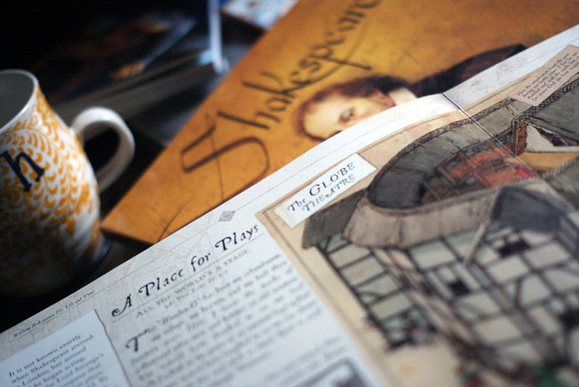 William Shakespeare: His Life and Times as your spine for your study. Read from this book everyday as the backbone of your study. Follow Shakespeare’s life through the book and choose your activities from the events of his life based on what you read.