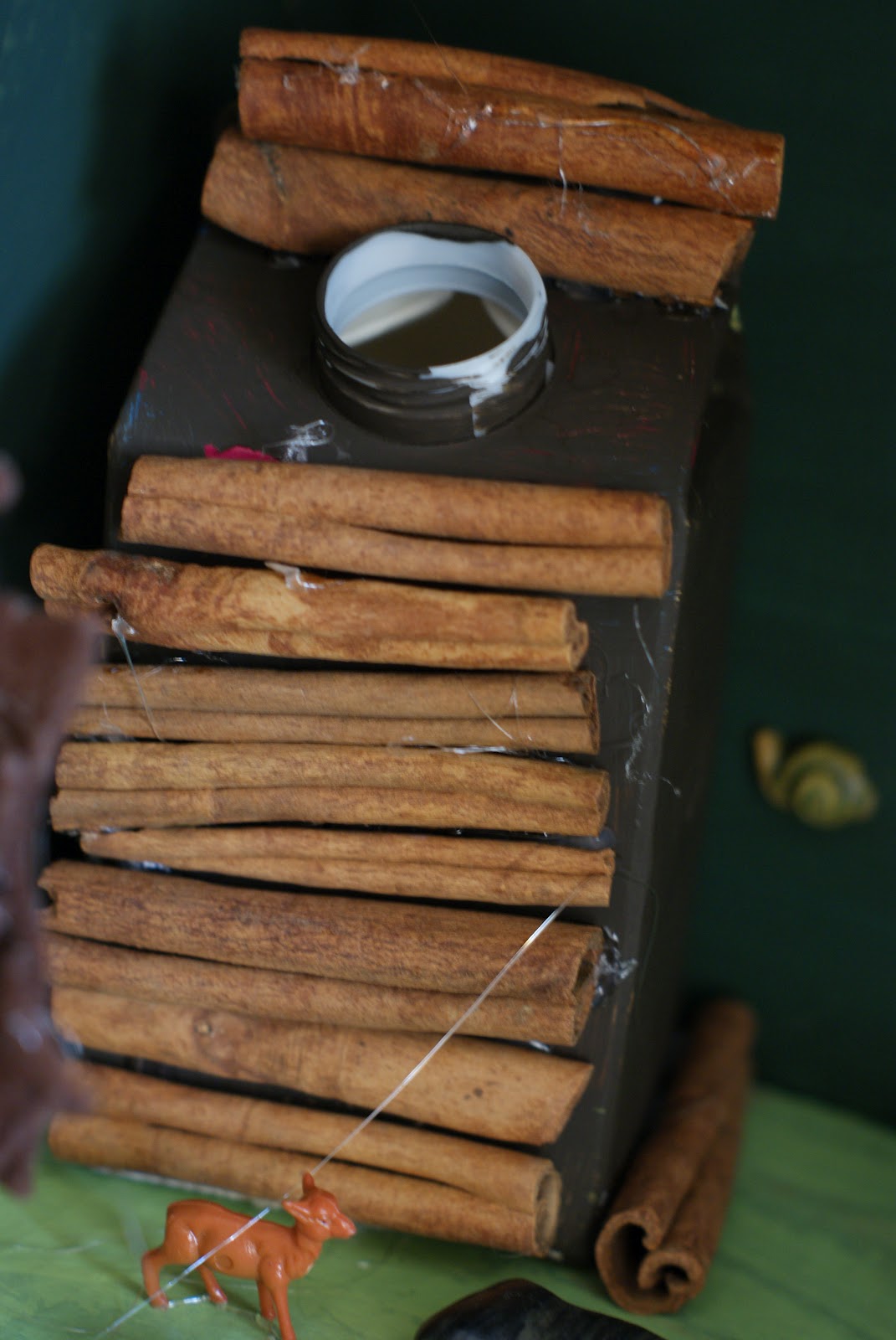 Cinnamon sticks = logs for cabin = genius idea! Great job 🙂