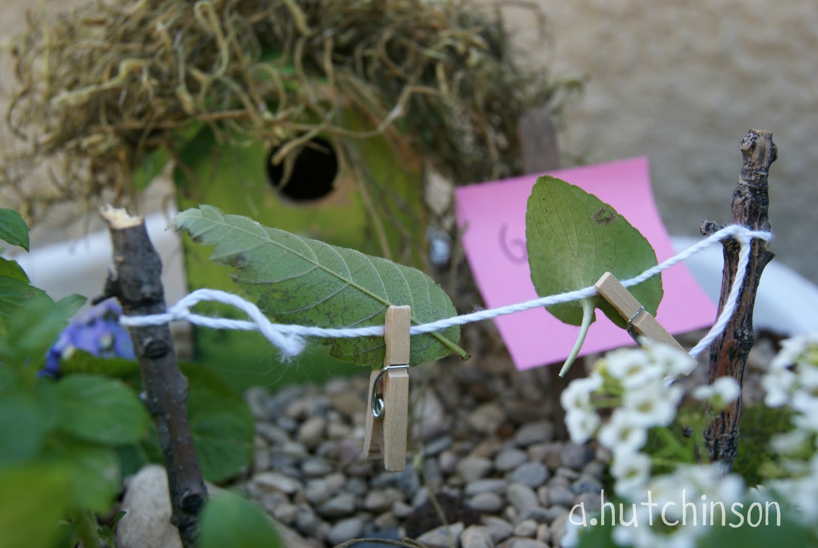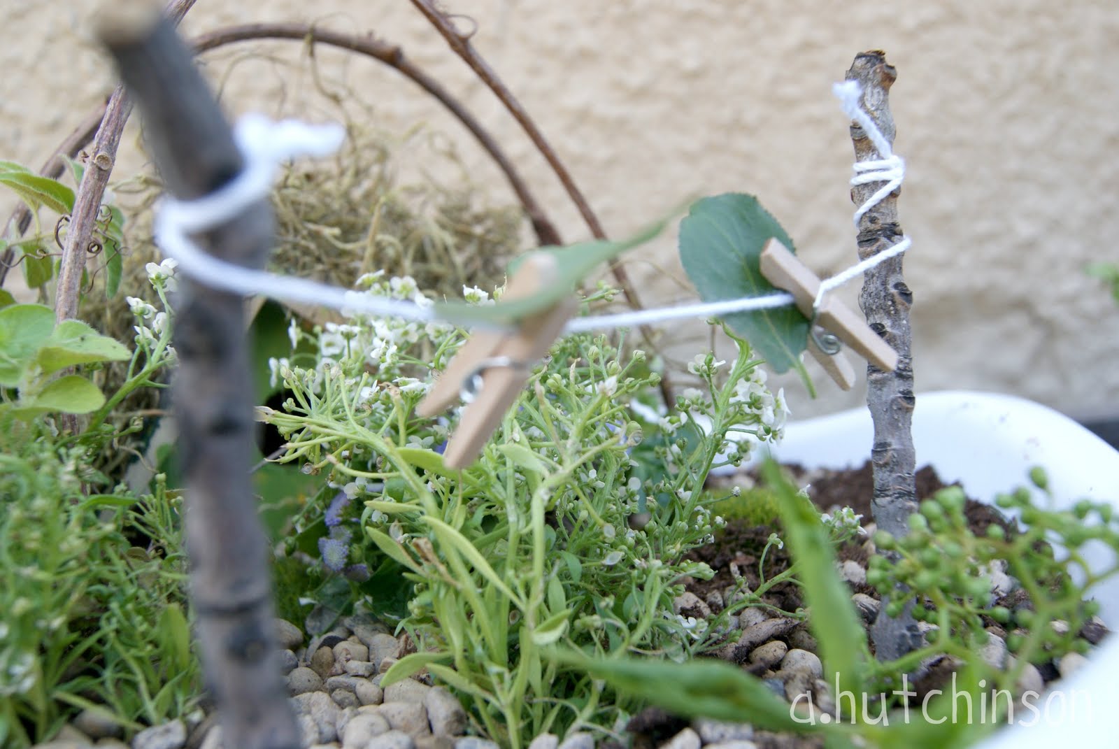 Adorable! I posted one this week also that we made to add in our 'butterfly' garden area. It was SO fun to put together. I LOVE the clothesline idea. May have to add one to mine too.