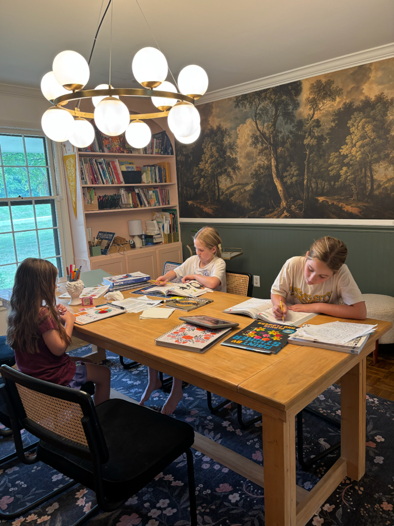 As someone who was homeschooled herself, she made the classic error of telling God she “would never homeschool.” After pulling out of private schooling mid year in 2023, she began homeschooling and their family has been thriving and absolutely loving their new rhythm.
