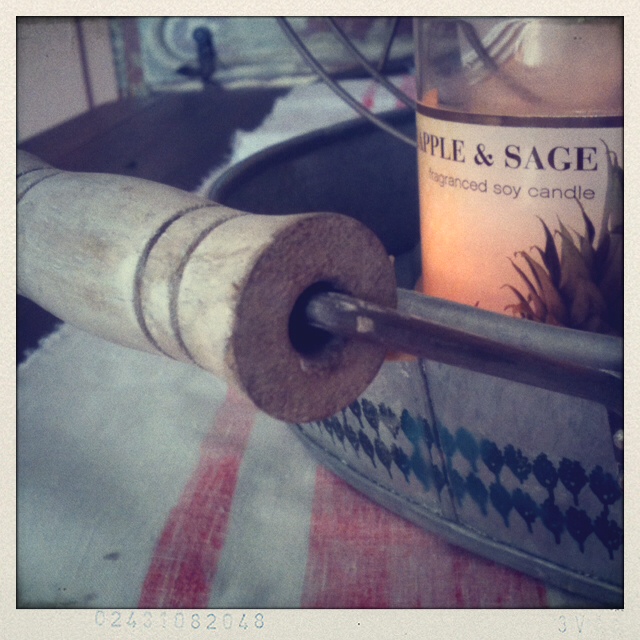 A couple of weeks ago, I totally copied Sasha @ Lemonade Makin Mama and made my own “French” linen table cloth. I used regular red paint, taped off where I didn’t want the paint to be and painted straight on to the fabric. I would have liked to go pick up a fabric that was more “linenish” but I already had this long piece of white sackcloth type of material and it looks pretty good. The paint did not fade in the wash like Sasha’s did, so I just flipped it over and use it that way…the other side is way too dark for me.๏ปฟ