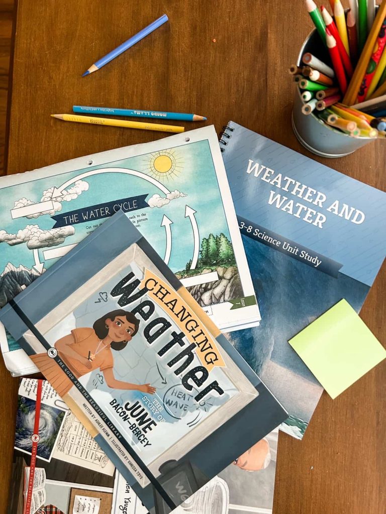 We head out the door to go to a friend’s house for science. The kids play outside, eat lunch together, and my mom-friend and I team-teach science together. We have children from ages 5-10, and are using Weather and Water from The Good and the Beautiful.