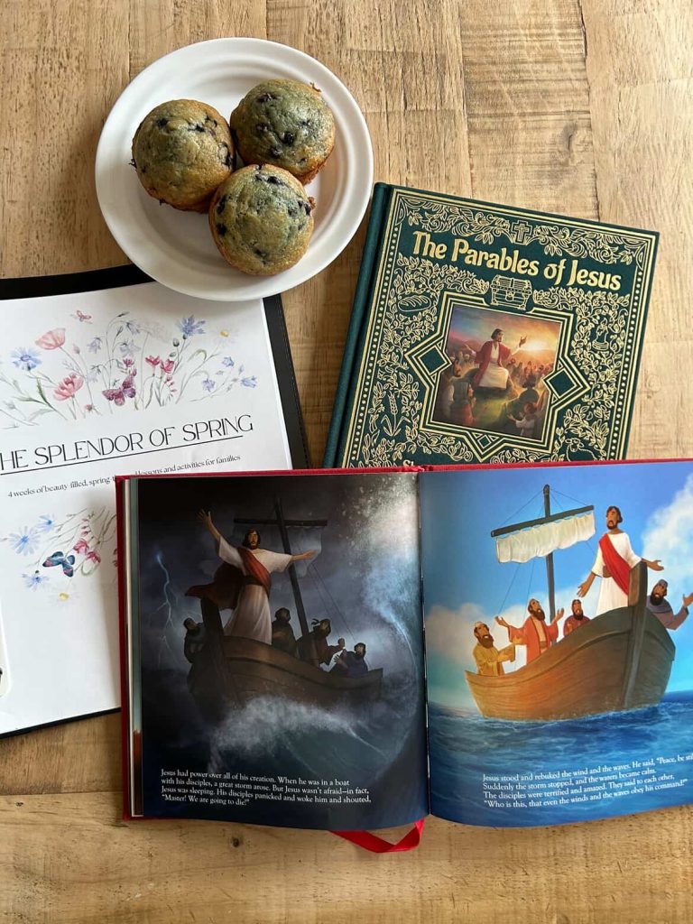 We eat breakfast together and I read to them from the Lithos children’s Bible. We also always have something seasonal in our morning rhythm. Right now, we’re jumping into The Splendor of Spring.