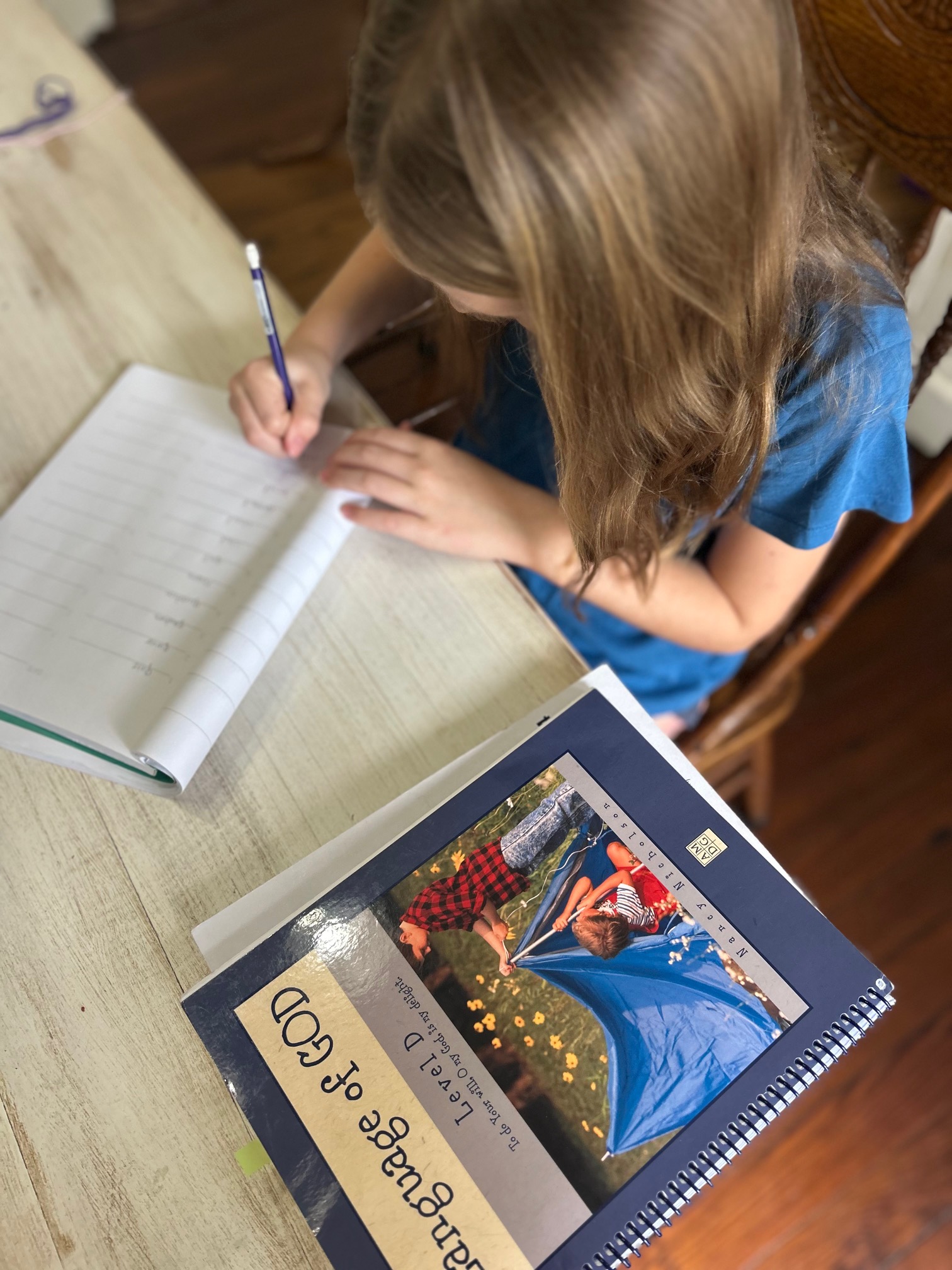 After breakfast the kids go off to begin their morning chores, get dressed and begin their independent work. This usually means we tackle our spelling, math and ELA assignments. Sometimes these are done one by one, and some days there’s many kids gathered at the table and I split my time with them.